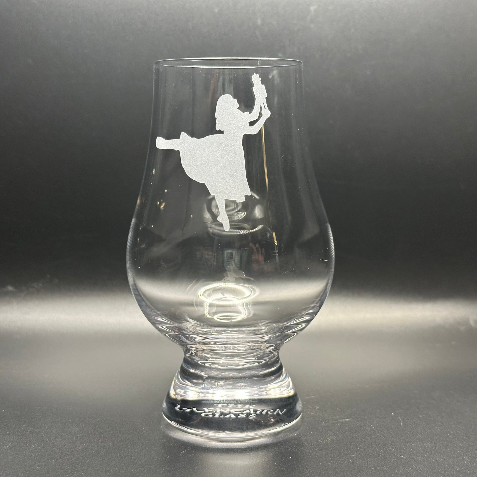 Twirl into the holiday spirit with this enchanting Glencairn glass, beautifully engraved with Clara dancing gracefully with her beloved Nutcracker. Perfect for sipping your favorite spirits while celebrating the magic of the season. A delightful keepsake for Nutcracker enthusiasts and anyone who loves a touch of festive whimsy in their glassware collection.