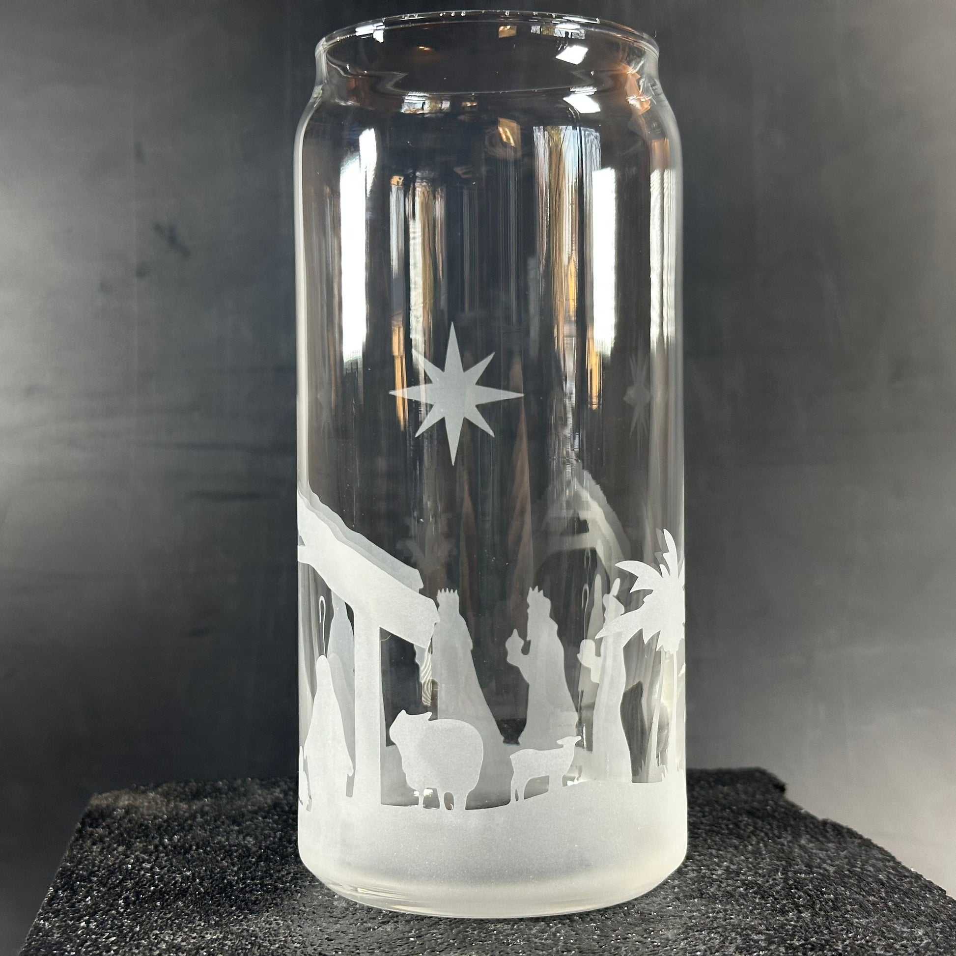 Celebrate the season with the playful Nativity with 3 Wise Men glass! Featuring a charming engraved scene, this glass adds a joyful and whimsical touch to your holiday sipping. Perfect for sharing festive cheer with a fun twist.